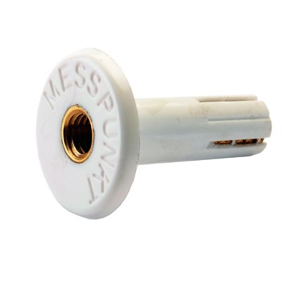 40mm Plastic Coated Brass Expansion Sleeve c/w Grub Screw (M8 Thread). Flat wall bolts with M8-female thread white.
